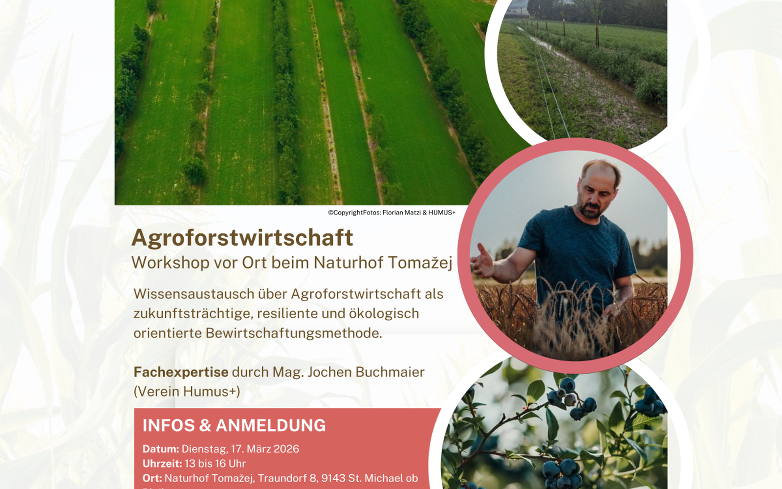 Anmeldung bis 10. März 2026 unter:Termino - Workshop Agroforstwirtschaft